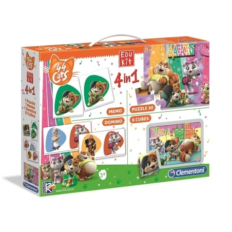 Edukit 4 in 1 di 44 Gatti Clementoni è un divertente kit con 4 giochi per divertirsi in compagnia dei fantastici personaggi dei 44 Gatti!