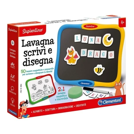 Sulla lavagna magnetica 2 in 1 di Sapientino il bambino potrà dare libero sfogo alla fantasia e divertirsi a scrivere, cancellare, disegnare e ricominciare, grazie all’apposito pennarello cancellabile.